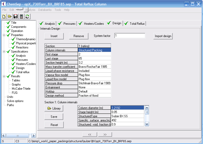 data with mass transfer coefficient (MTC) correlations in ChemSep.