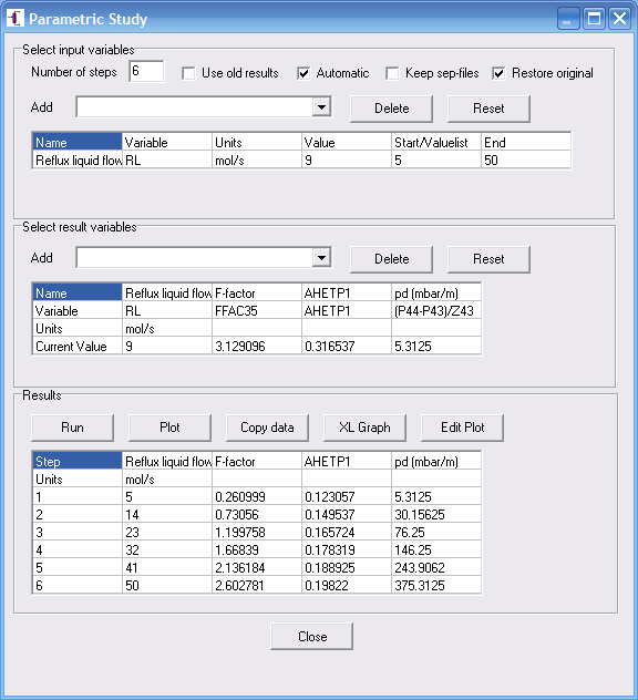 Note that the range of the parametric study must be large enough for this to work. ChemSep uses