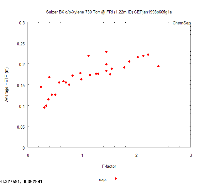 This computes an average HETP over the whole bed of section number 1. We plotted it as